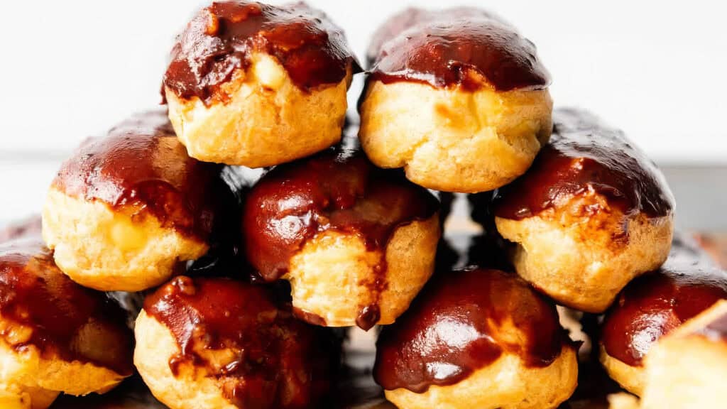 Delight in every bite of these Classic Chocolate Eclairs, where crisp, golden-brown French choux pastry meets a luscious, velvety vanilla pastry cream. Irresistibly indulgent!