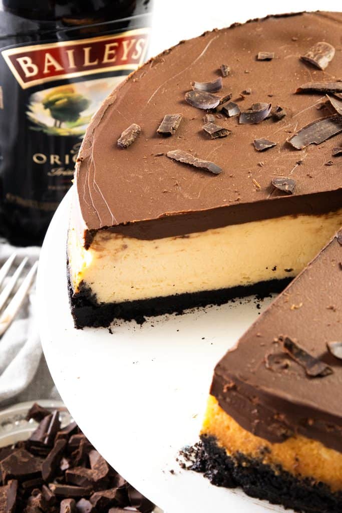 This Baileys Irish Cream Cheesecake is rich, creamy, and topped with chocolate ganache. The perfect holiday or St. Patrick’s Day dessert.