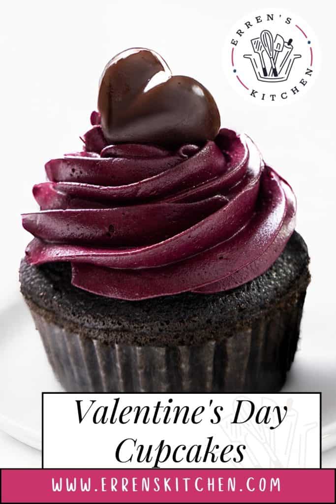 Finish each cupcake with the chocolate heart candy of your choice, serve and enjoy your beautiful and delicious Valentines Day Cupcakes!