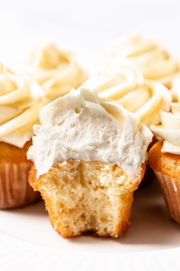 Transfer the buttercream to a piping bag fitted with a star tip and pipe swirls onto the fully cooled cupcakes.