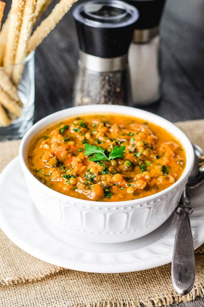 Lentil soup is comforting in so many ways; and this delicious recipe is whipped up with ease which is so much better than buying it canned!