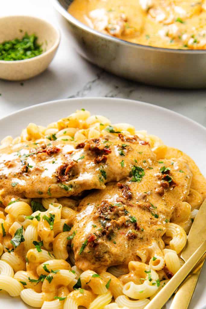 Creamy Marry Me Chicken made in one skillet with parmesan, sun-dried tomatoes, and garlic. Easy enough for weeknights, special enough for date night.