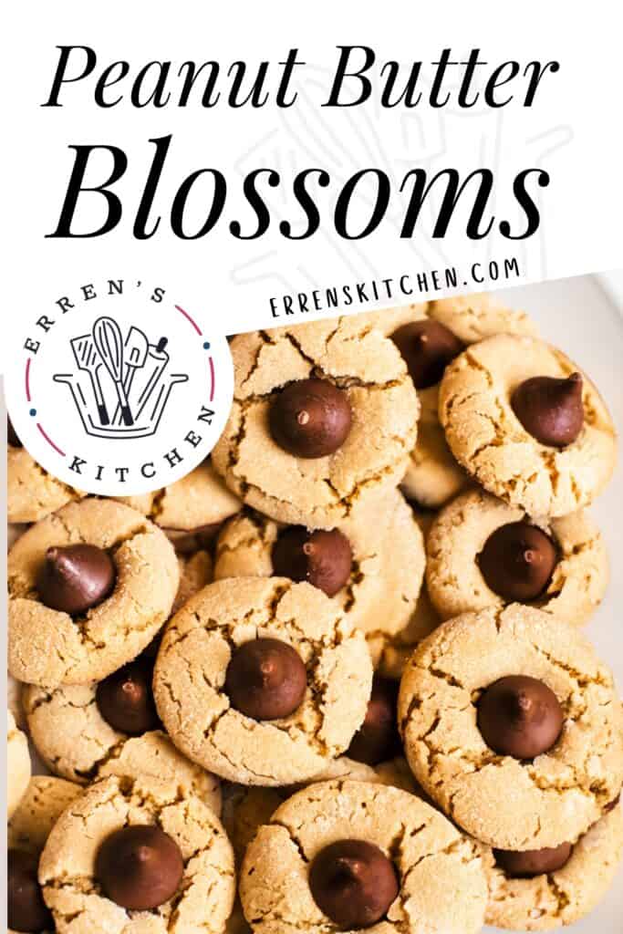 Peanut butter blossom cookies, each with a chocolate kiss—a timeless treat.