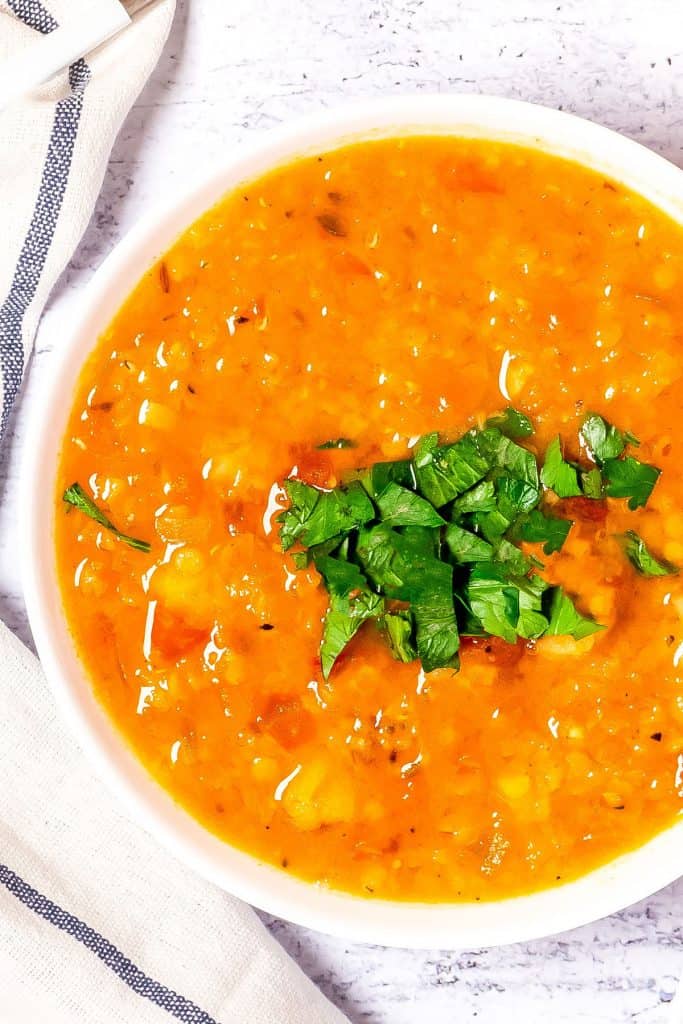 Red lentil soup can be a whole meal and this soup is a great example of that. It’s packed with lentils and vegetables and so tasty you’ll be making it batch after batch!