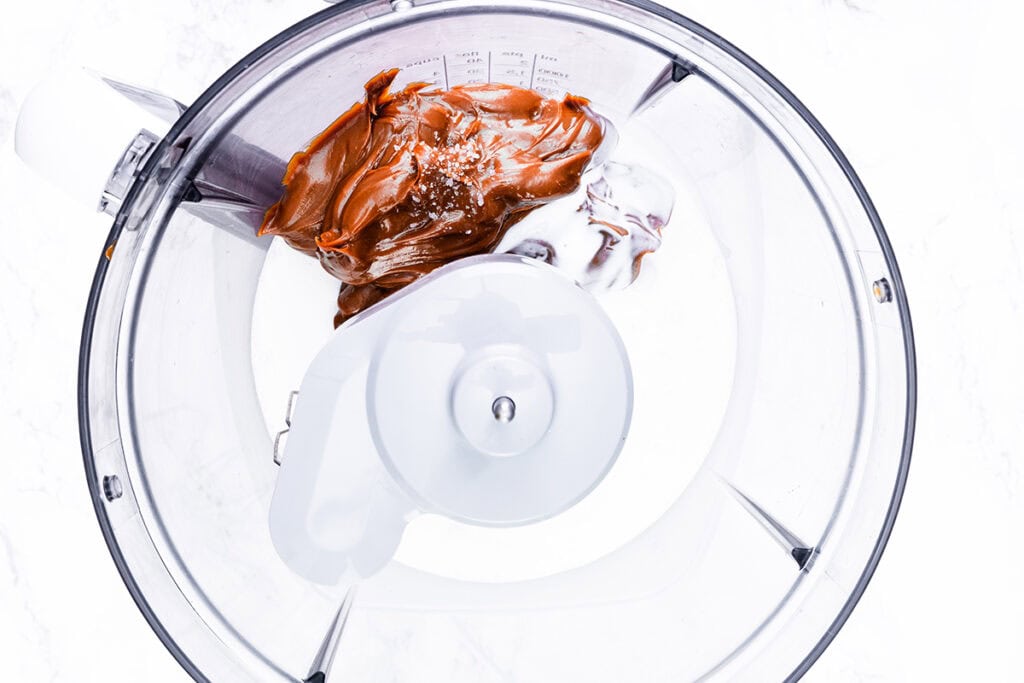 Next, place the remaining dulce de leche, whipping cream, and a pinch of salt into the bowl of your food processor. If you don’t have a food processor, you can use an electric mixer instead.