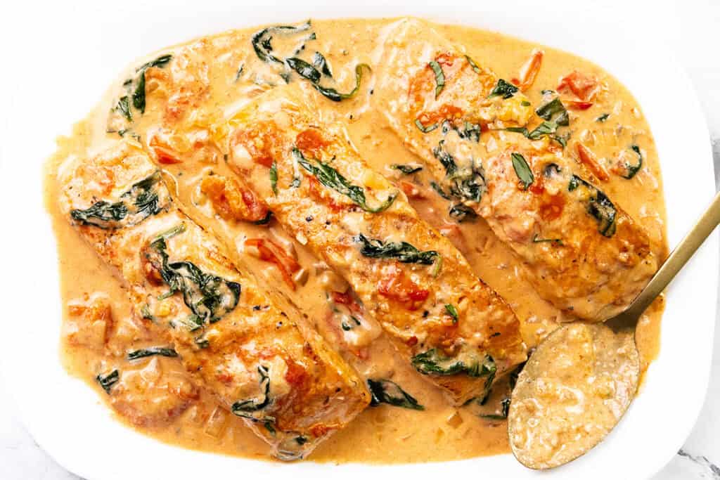 Ready in just 30 minutes, this easy delectable Tuscan Salmon in Cream Sauce will impress the whole family any night of the week.