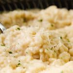 This Easy Parmesan Risotto is creamy and comforting, with tender Arborio rice cooked in chicken stock, finished with butter and freshly grated Parmesan for a rich, silky texture.