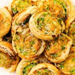 Buttery, flaky puff pastry wrapped around delicate slices of prosciutto, creamy cheese, and a thin layer of pesto. These savory pinwheels are elegant, flavorful, and make an easy yet impressive appetizer.